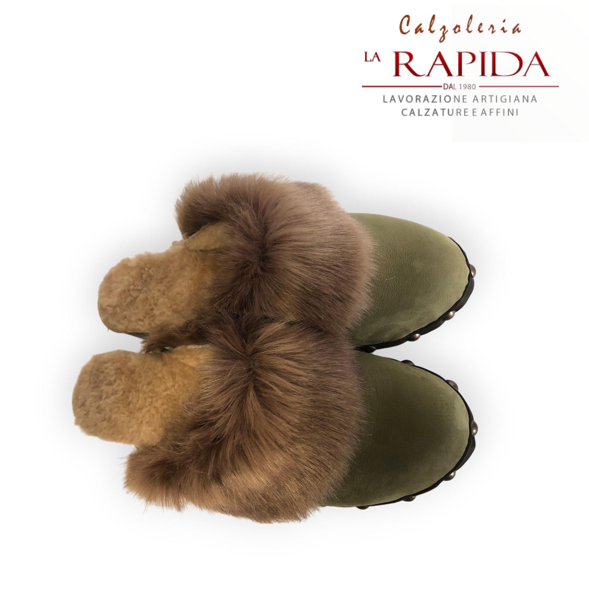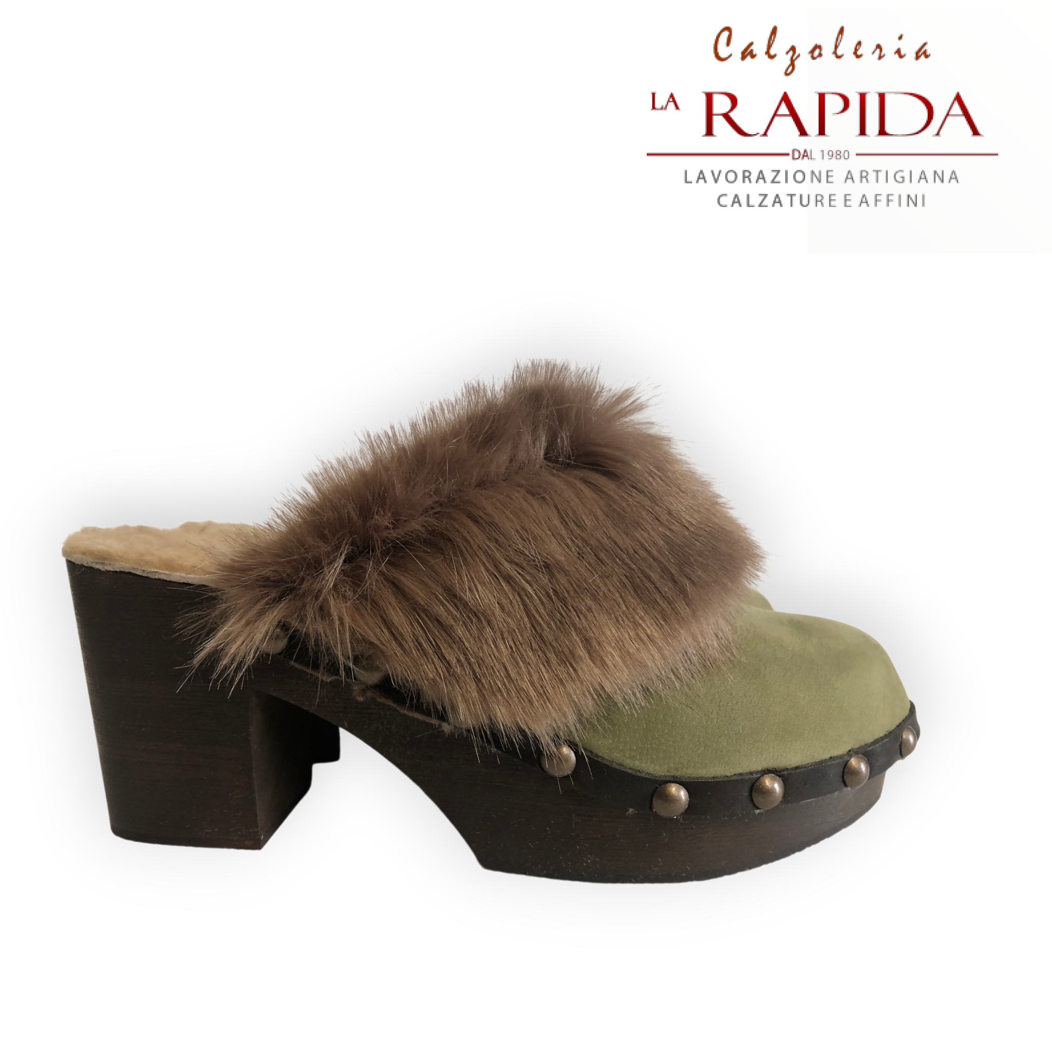 Zoccolo in Pelle Nabuk con risvolto in ecopelliccia Volpe Foderato di Vero Shearlig