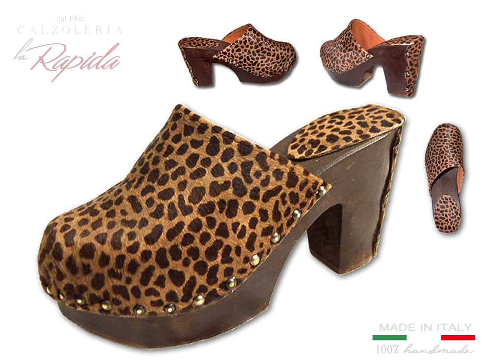 Materiale: fondo in legno, con tomaia di pelle cavallino
