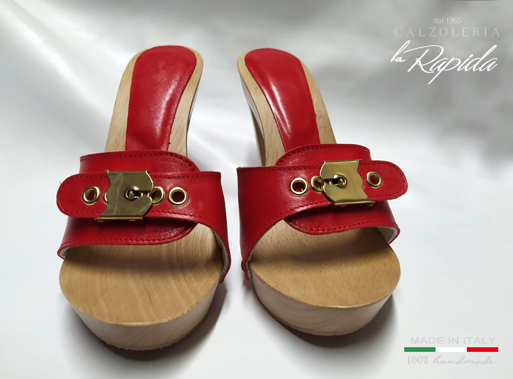 ► Zoccoli in pelle rossi fascia regolabile tacco alto | LA RAPIDA