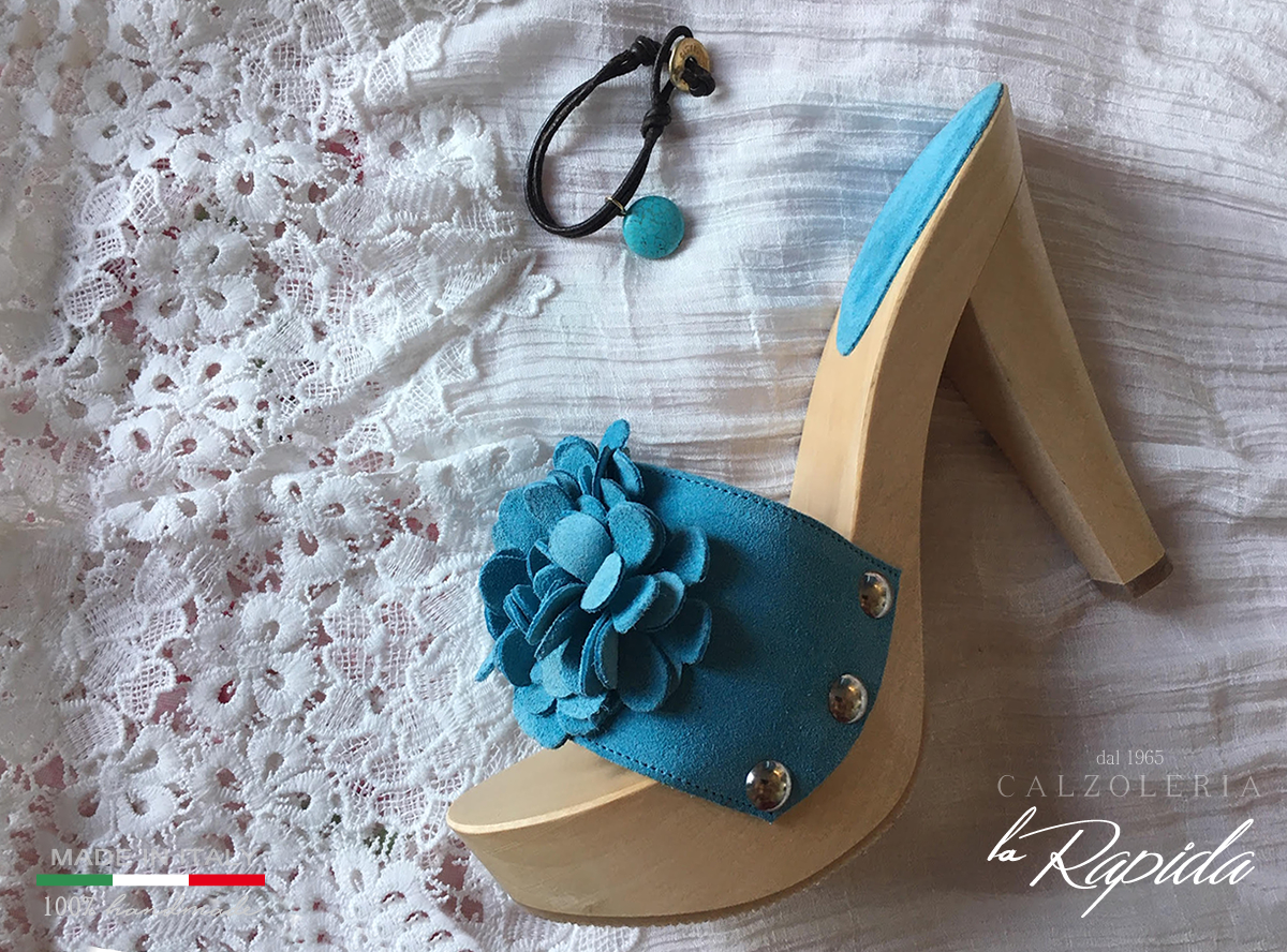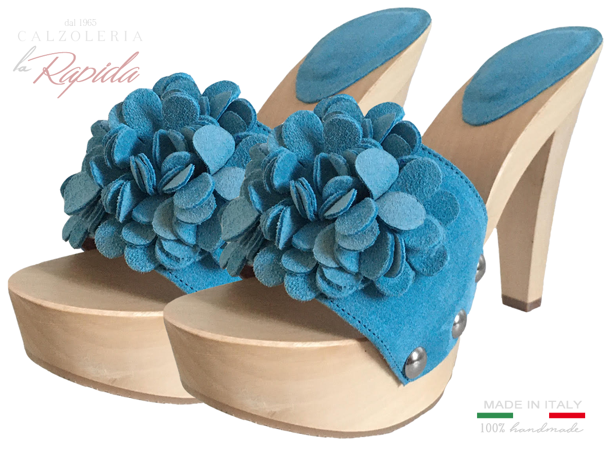 Zoccoli Belli di Lusso Millefiori in Pelle Camoscio Azzurra