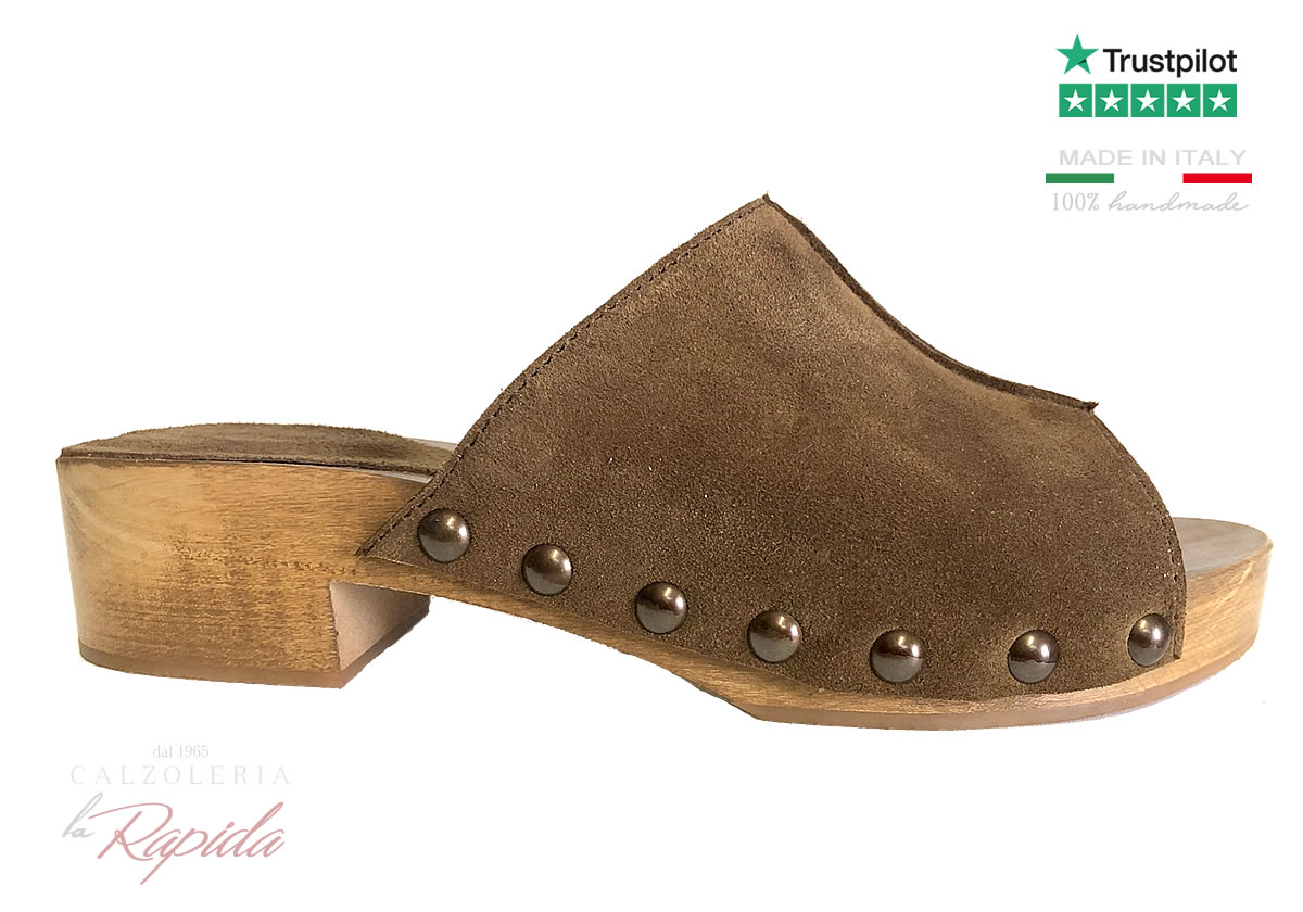 Zoccolo in scamosciato cognac con fascia avvolgente