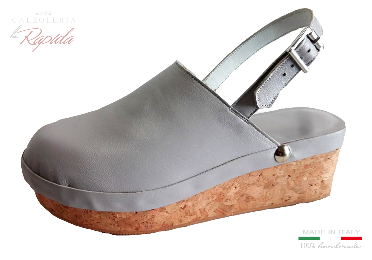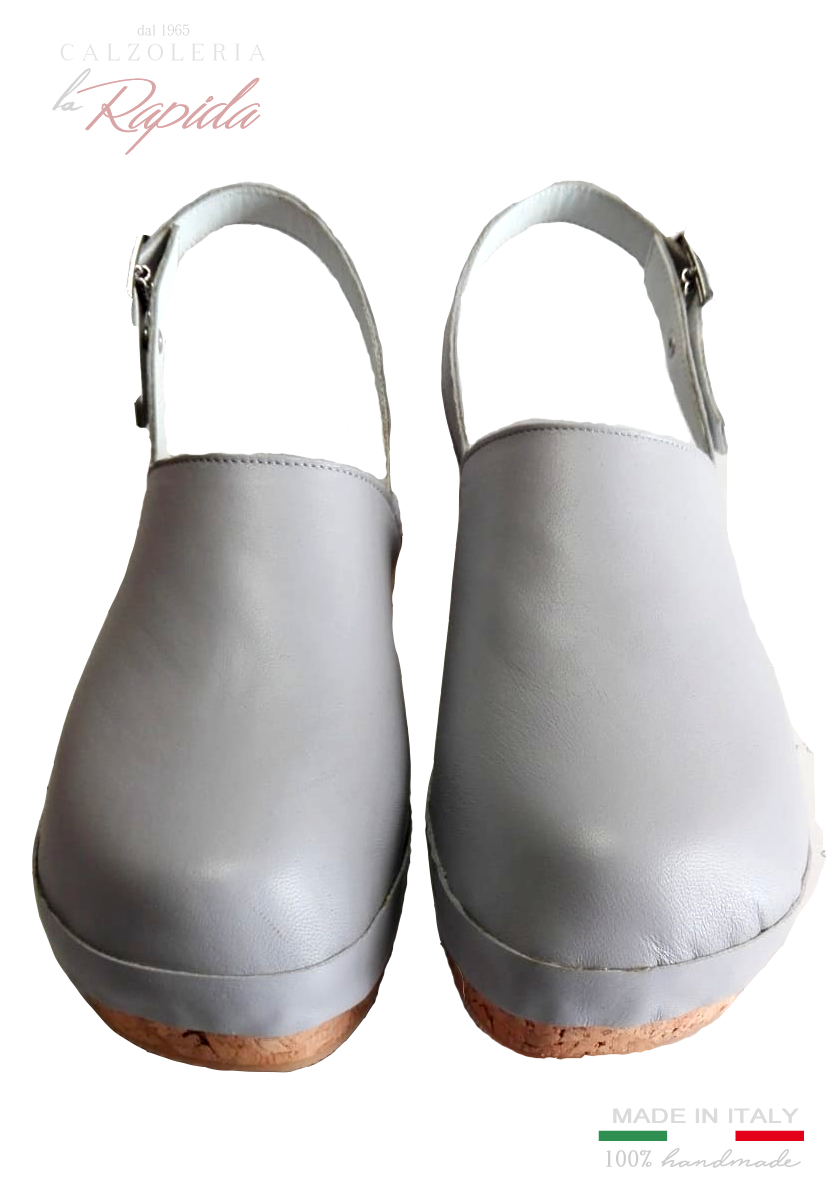 Descrizione: I nuovi zoccoli svedesi Swedish clogs 2024, bellissimi mules da Donna artigianali con fascia in pelle grigia e comodo cinturino in Pelle regolabile. Il tacco basso in sughero, rende questi zoccoli un prodotto elegante, e comodo di indiscussa bellezza e stile ricercato.